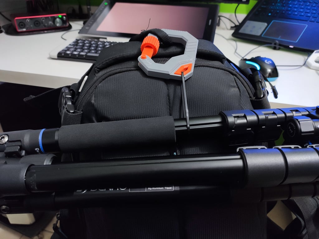 This Screw Lock Carabiner is a versatile tool designed for securing gear, organizing equipment, and countless other applications where a reliable clip is needed. Its distinctive design features a robust frame with a screw-lock gate mechanism, offering enhanced security compared to standard spring-gate carabiners. The screw lock prevents accidental opening, ensuring your items stay securely attached. While not intended for climbing or life-safety applications, this carabiner is perfect for a wide range of everyday tasks. Imagine using these to organize your bug-out bag, keeping essential items like water bottles, first-aid kits, or tarps neatly attached and easily accessible. In a camping scenario, they can be used to hang lanterns, suspend food bags to keep them safe from animals, or secure tent lines. The screw-lock mechanism provides peace of mind, knowing that your gear won't accidentally detach. The 3D printable nature of this design allows for customization with different colors and materials, depending on your specific needs. Consider printing with a durable filament like PETG or ABS for increased strength and longevity, and ensure a high infill percentage and multiple walls for maximum load-bearing capacity.