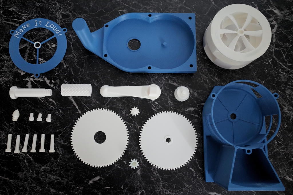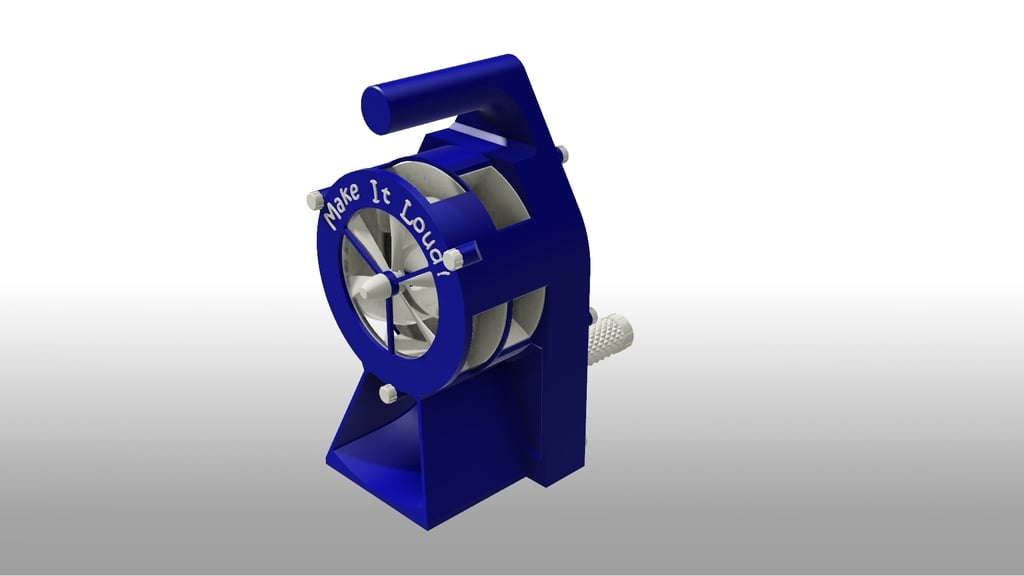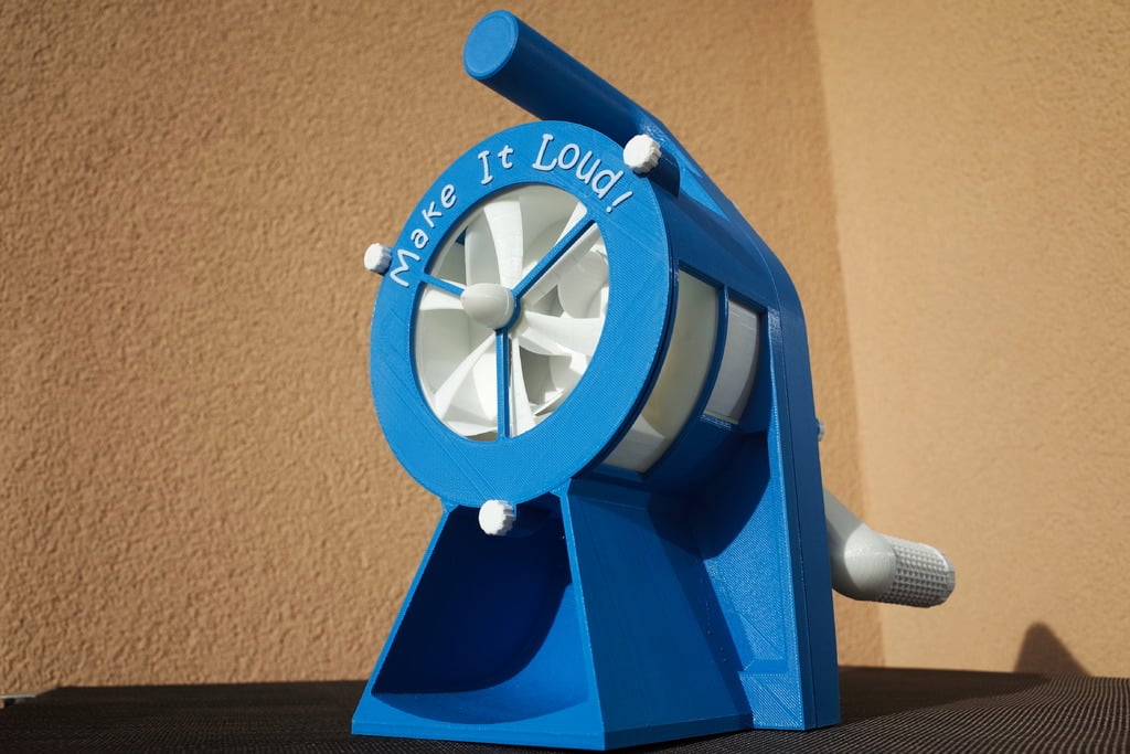 This hand-cranked air raid siren is a fully 3D-printable device designed to produce a loud, attention-grabbing sound in emergency situations. It features a bright, easily visible design with a rotating fan enclosed in a housing with strategically placed openings. A hand crank on the side allows for manual operation, making it independent of batteries or electrical power. The "Make It Loud!" inscription on the front is a constant reminder of its intended purpose. For preppers, survivalists, or anyone interested in emergency preparedness, this siren offers a reliable and portable signaling solution. Its hand-powered design ensures functionality even when conventional power sources are unavailable. It can be used to signal for help, warn others of danger, or simply draw attention to your location. Imagine using it to alert your community to an approaching wildfire, signal for assistance after a natural disaster, or even as a deterrent in a remote campsite. The design appears to be optimized for 3D printing, but consider using durable materials like ABS or PETG for increased longevity and resistance to wear and tear. You may also want to use a lubricant to reduce friction on the moving parts.