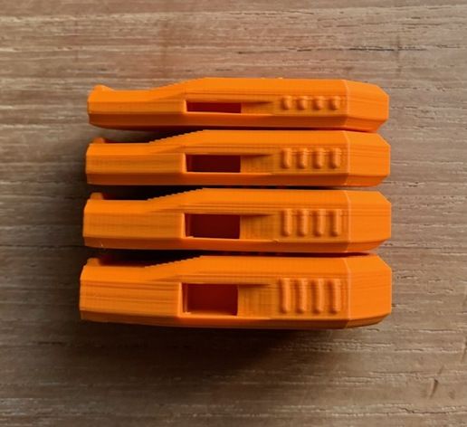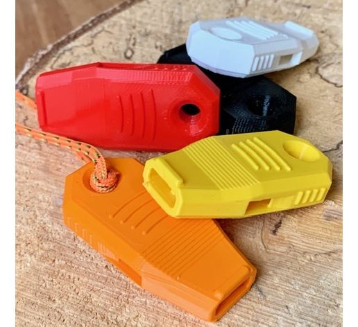 This is a 3D-printable emergency whistle, designed for maximum sound output in a compact package. The rectangular body is designed to fit comfortably in your hand or on a lanyard, and features a streamlined design to maximize airflow for a piercing blast. A loop at the end accommodates a lanyard or keyring for easy attachment to your gear, ensuring it's always within reach. The bright color, like the red shown, enhances visibility, making it easier to locate in a survival situation. This whistle is a crucial addition to any prepper's kit, hiker's backpack, or emergency preparedness plan. Its primary function is signaling for help in distress situations, enabling you to alert rescuers over long distances. Whether you're lost in the woods, injured and need assistance, or simply need to signal your location, this whistle can be a lifesaver. The design is optimized for 3D printing, likely using durable materials like ABS or PETG for weather resistance and longevity. Consider printing several to stash in your vehicle, bug-out bag, and at home.