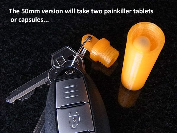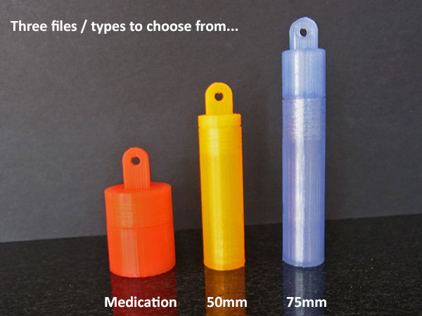 These Key Fob Containers are a simple and discreet way to keep essential items on your person at all times. Designed as cylindrical tubes with secure closures, these containers attach to your keyring, making them ideal for carrying small amounts of cash, essential medications, or other small items you might need in a pinch. The design features a clever threaded closure on some models, ensuring that contents remain secure even during strenuous activity. The other model uses a plug type closure. For the prepper or survivalist, these key fob containers offer peace of mind. Imagine being caught in an unexpected situation where access to cash or medication is critical. With these containers, you'll have a small emergency stash readily available. Consider printing these in a durable, weather-resistant filament like PETG or ABS for added protection against the elements. Keep one on your everyday carry keyring, stash one in your bug-out bag, and even consider one for your vehicle's keyring. These are perfect for camping, hiking, or any situation where you want to be prepared for the unexpected.